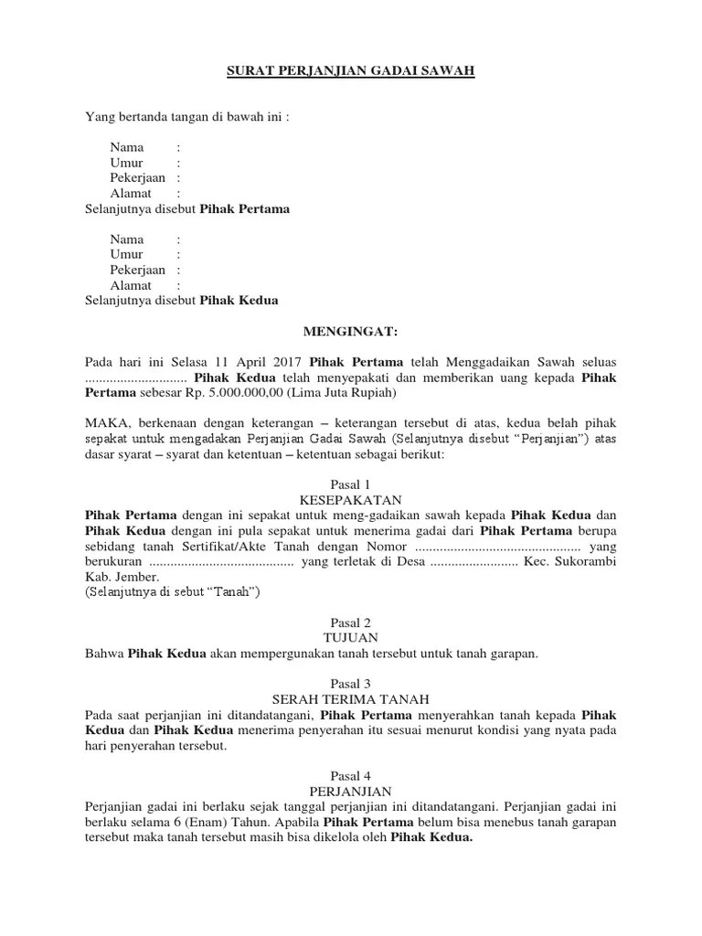 Contoh surat gadai tanah sawah. Yuk kita belajar rahasia cara membuat kumpulan contoh surat perjanjian gadai tanah pertanian atau perumahan terbaru yang paling baik dimata hukum. Kumpulan gambar tentang surat gadai sawah, klik untuk melihat koleksi gambar lain di. Contoh surat gadai tanah yang sah dan benar dilengkapi detail . Surat perjanjian gadai mobil tanpa perantara.